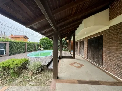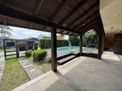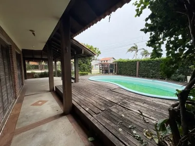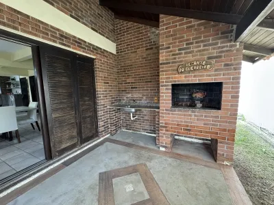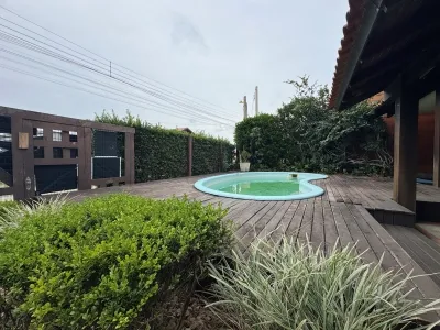Sobrado em alvenaria, a 03 quadras do mar, pertinho da Barra de Imbé, com piscina, composto por 4 dormitórios, sendo 02 suítes com sacada, banheiro social, lavabo, ampla sala de estar com lareira, sala de estar, cozinha, área de serviço, depósito.