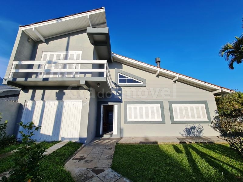 Sobrado em alvenaria com 03 dormitórios, sendo 01 suíte e 01 térreo, sala de jantar, estar com lareira, banheiro social, cozinha, garagem fechada, área de serviço, churrasqueira. Amplo anexo com churrasqueira, 02 suítes, banheiro social.