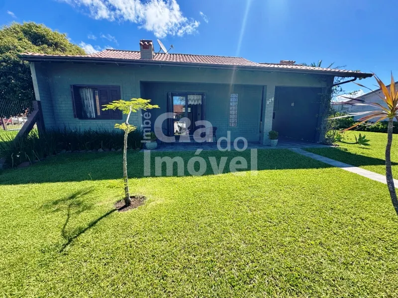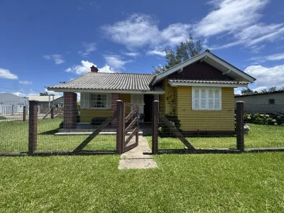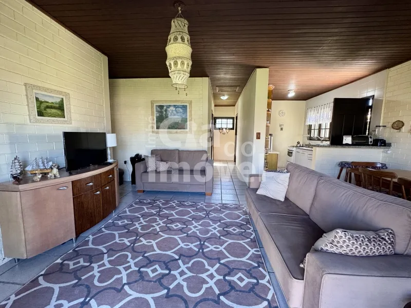 Casa principal: 03 dormitórios, sendo 01 suíte, banheiro social, sala de estar com lareira, jantar, cozinha, abrigo para carro com churrasqueira.