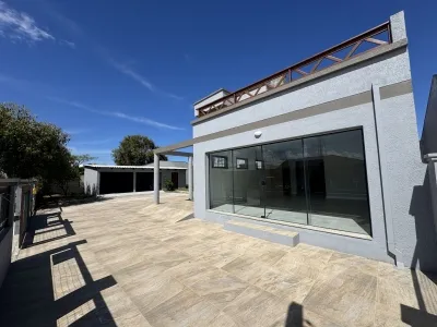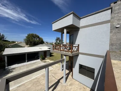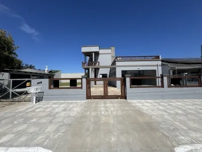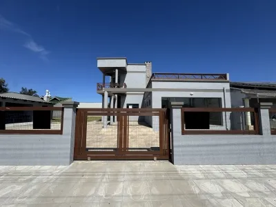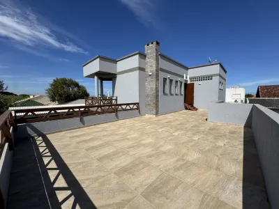 Sobrado com 219m², 02 terrenos, 04 dormitórios, sendo 01 suíte térrea, 02 banheiros sociais, sala de estar com lareira, ampla cozinha com churrasqueira, área de serviço fechada, terraço, anexo com deposito, banheiro.