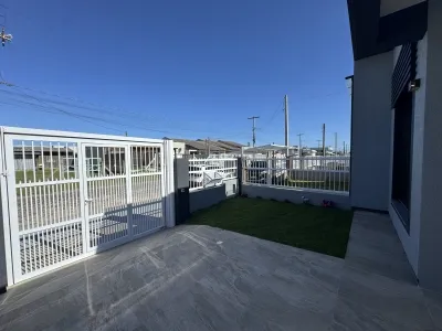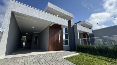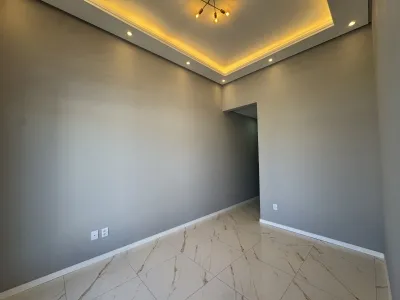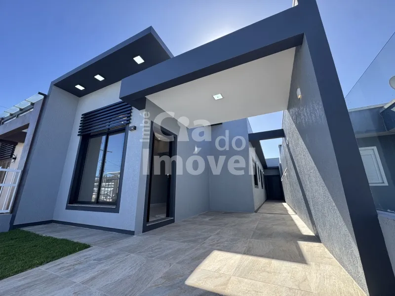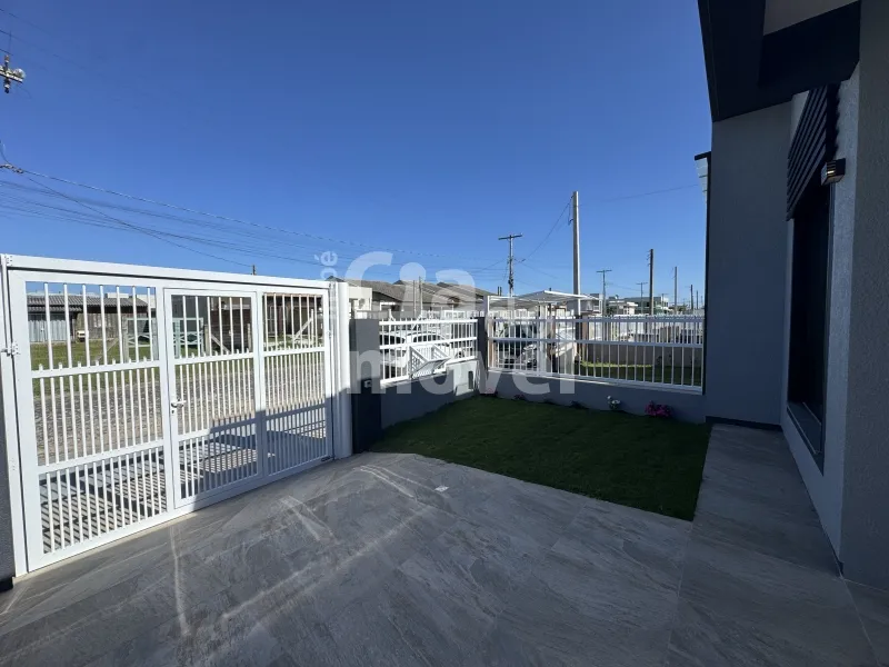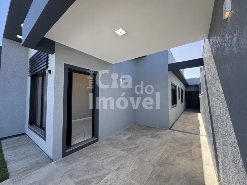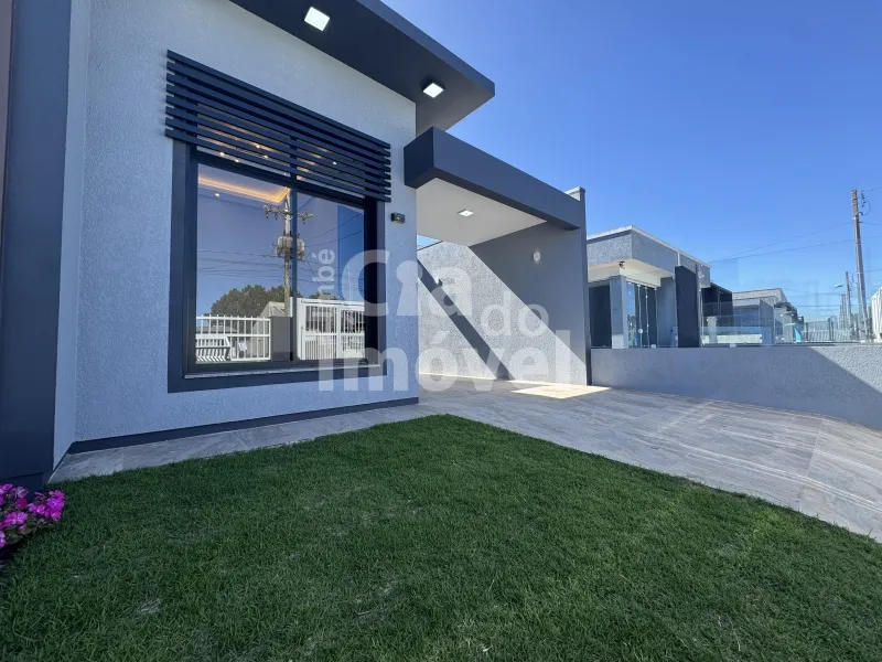 Casa construída em meio lote, com 120m², sala de estar, 1 suíte mais 2 dormitórios, banheiro social, área de serviço interna com saída para pátio lateral, ampla cozinha com churrasqueira.