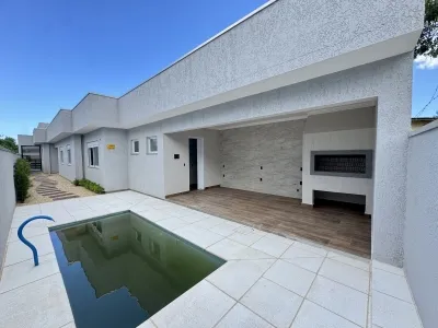 Casa meio lote, com 118m², terreno 6,5x39,70, no Centro de Imbé, próxima a todos os recursos, região de moradores, composta por 03 dormitórios, sendo 01 suíte, 02 banheiros sociais, sala de estar, jantar e cozinha integrados, piscina e churrasqueira.