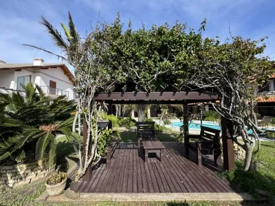 Sobrado no Centro de Imbé, a 4 quadras do mar, composto por 6 dormitórios, sendo 3 suítes (sendo uma suíte com hidromassagem) banheiro social, salas de estar com lareira, sala de jantar, cozinha, área gourmet com churrasqueira, garagem, despensa e área de serviço, piscina, e dependência de empregada completa.