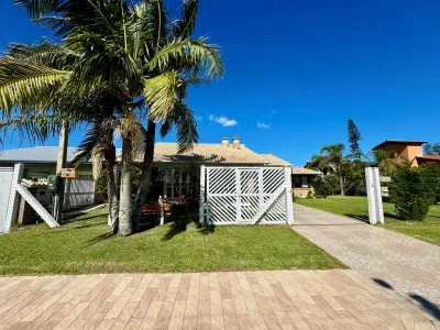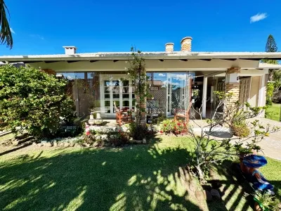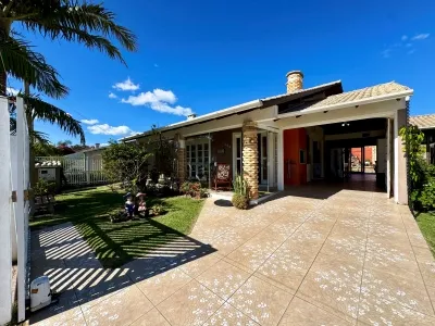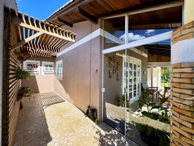 Casa com 2 terrenos toda em laje de concreto, 3 dormitórios sendo um suíte, sala de estar, jantar e cozinha em conceito aberto, área fechada em vidro, garagem com churrasqueira, ampla cozinha, escritório (podendo ser mais um dormitório) piscina.