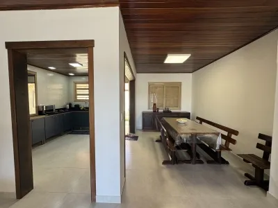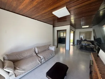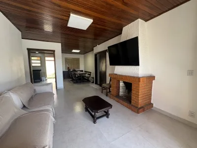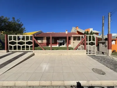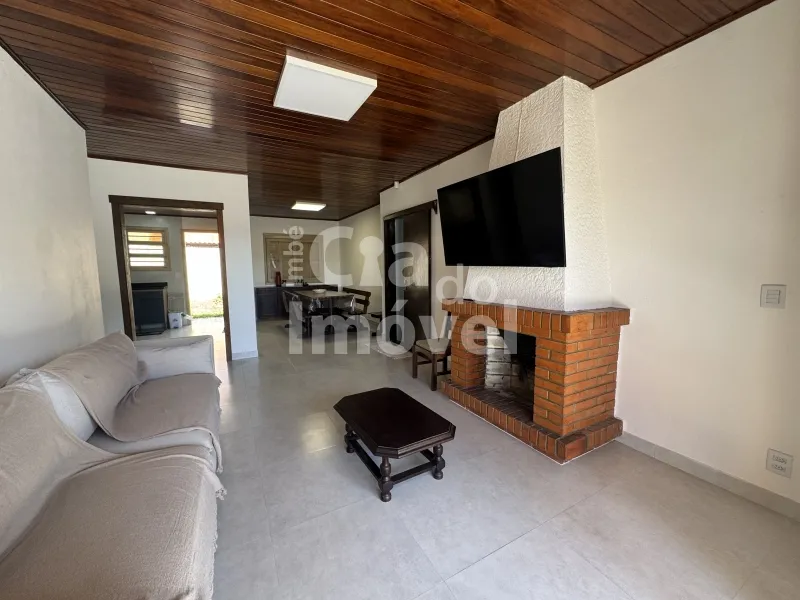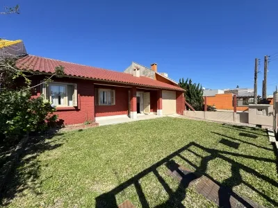 Casa uma quadra do mar, com 03 dormitórios, sendo 01 suíte, sala de estar com lareira, sala de jantar, cozinha, banheiro social, área de serviço, garagem com churrasqueira.