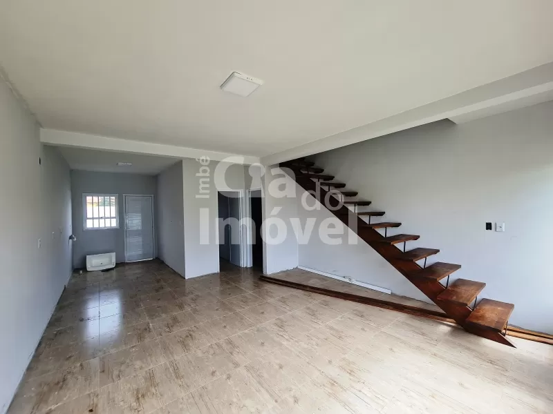 Sobrado com 04 dormitórios (sendo 1 térreo) sala e cozinha integrados, 02 banheiros sociais, pé direito alto, pátio nos fundos com churrasqueira, esquadrias de alumínio, espera para água quente, vaga para carro. 110m² com pergolado