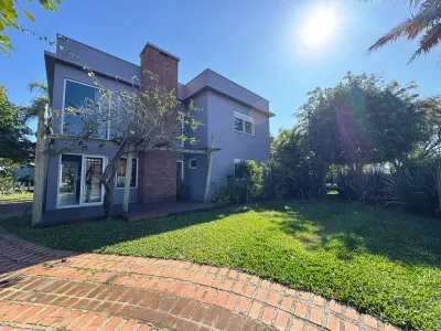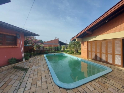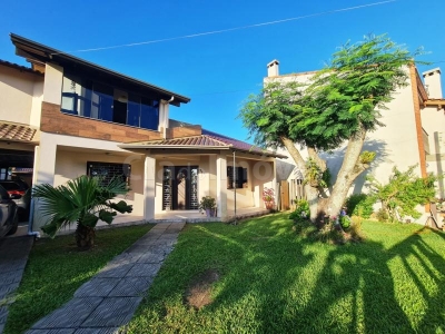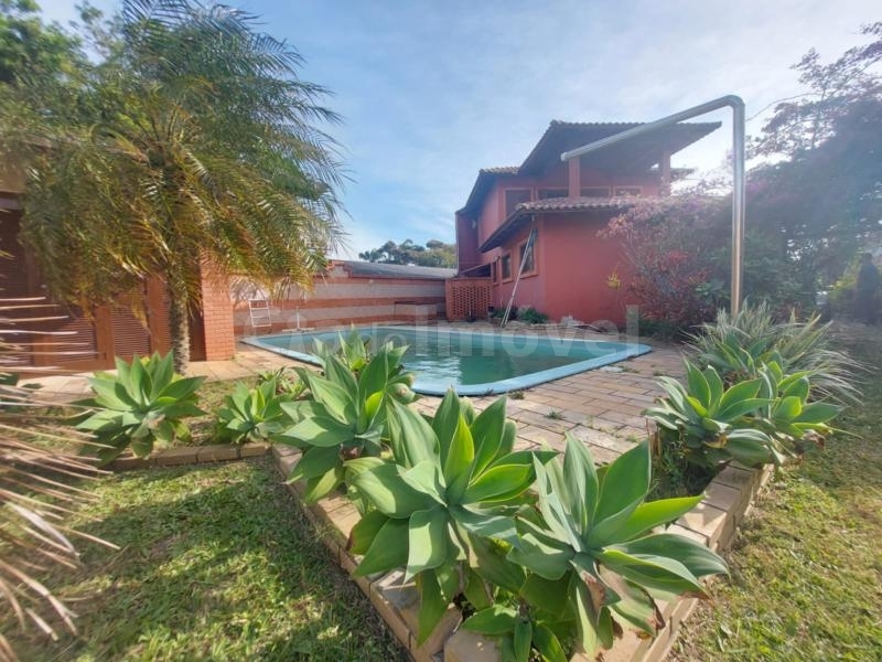 Sobrado com 03 dormitórios (sendo 01 suíte), living de 02 ambientes, cozinha, churrasqueira, lavanderia, garagem fechada para 02 carros. Salão de festas com amplo espaço, cozinha, churrasqueira, fogão a lenha e 01 banheiro. São 02 terrenos, com piscina de 8x4m.