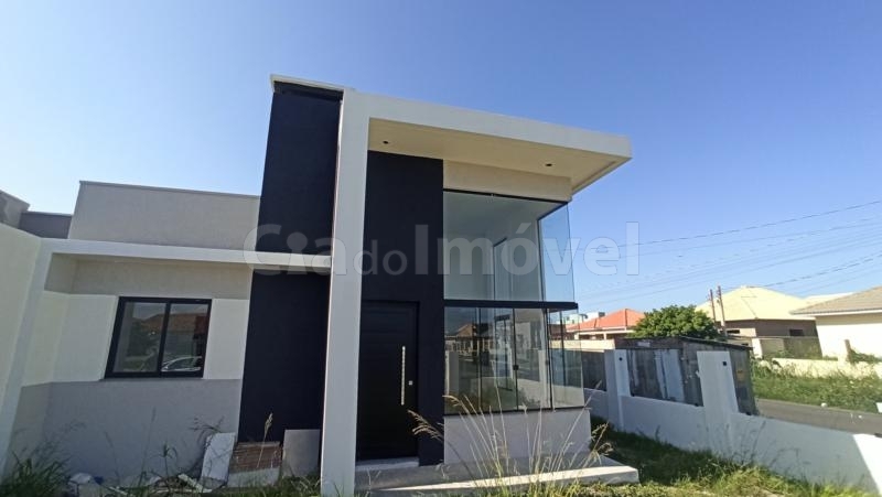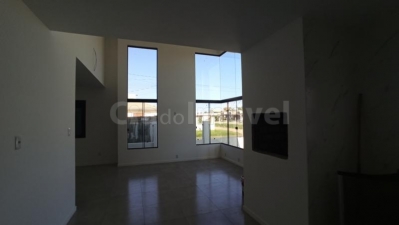 Excelente residência alto padrão de esquina com 84m², placa solar, composta por 02 dormitórios, sendo 01 suíte, banheiro social, pé direito duplo na sala, espera para lareira, cozinha com churrasqueira, área de serviço. Terreno 10,00x19,00m.