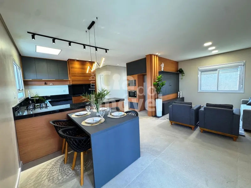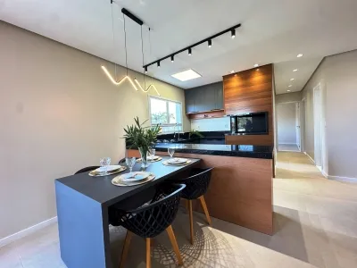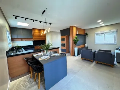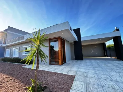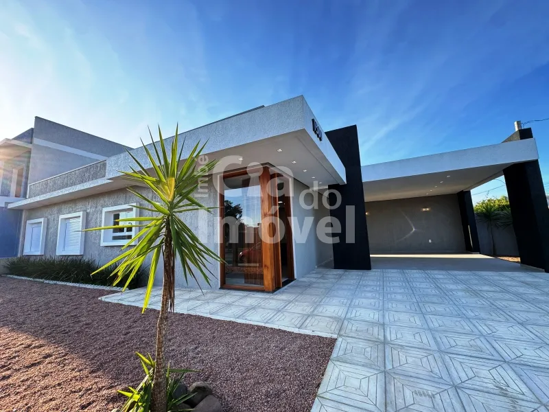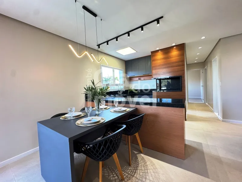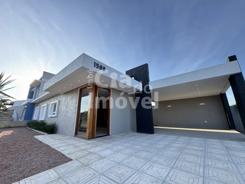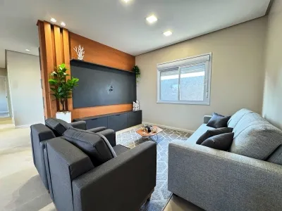 Casa de esquina nova, cobertura em laje de concreto e rebaixe em gesso, com 03 dormitórios sendo um suíte, sala de estar, jantar e cozinha com churrasqueira integrados e mobiliados, banheiro social, área