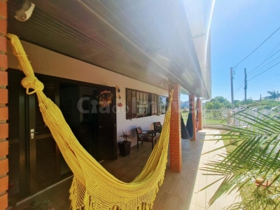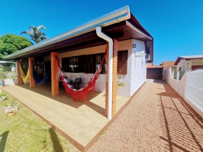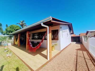 Casa alvenaria com 03 dormitórios, banheiro social, sala, cozinha + ampla área coberta com churrasqueira, anexo com 2 dormitório, sala e cozinha integrados, banheiro social.