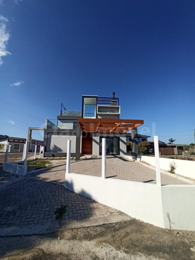 Casa de esquina em terreno alto da rua, junto a barra e beira mar, composta por 03 dormitórios sendo um suíte, living com 2 ambientes, cozinha, banheiro social, abrigo com churrasqueira, avarandado.
