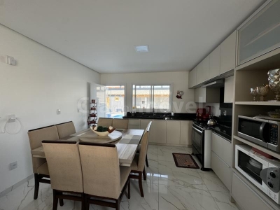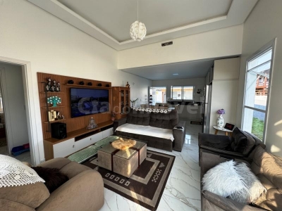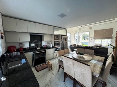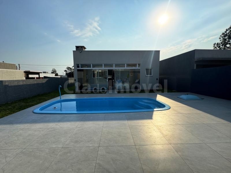 Excelente casa em alvenaria, com piscina, composta por 03 dormitórios sendo 01 suíte com closet, living em 02 ambientes, varanda com área de serviço fechada com vidro, churrasqueira, pátio com jardim e área coberta para veículo, rebaixe em gesso com iluminação em led, espera para split, anexo com churrasqueira, banheiro social e depósito.
