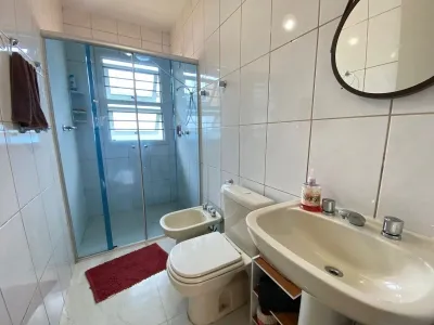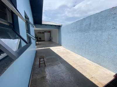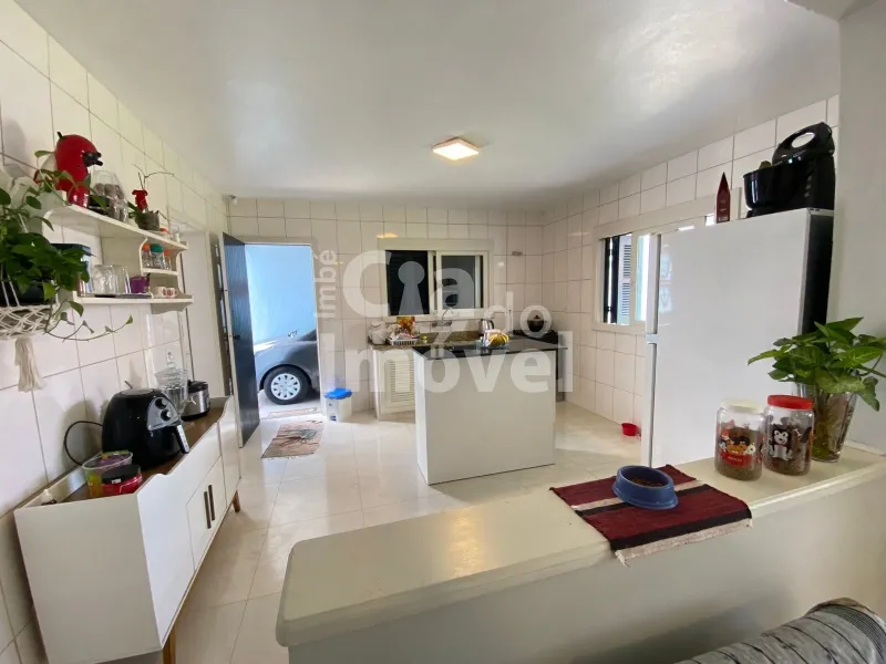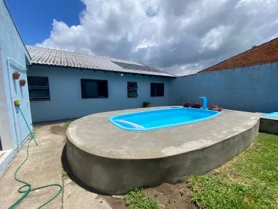 com 02 dormitórios, sendo 01 suíte, 01 banheiro social, sala de estar e jantar, cozinha estilo americana, área de serviço, toda em laje de concreto, água quente, anexo com churrasqueira, piscina aquecida, amplo pátio frente a fundos, garagem fechada para carro e abrigo.