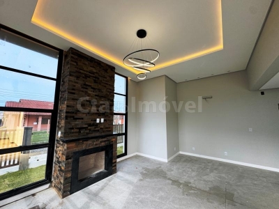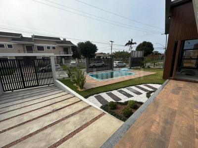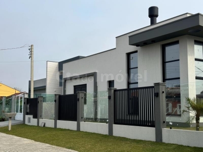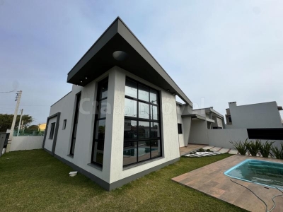 Casa de esquina com piscina, projeto diferenciado moderno com 03 dormitórios, sendo 02 suítes, living 02 ambientes com lareira, cozinha, banheiro social, lavanderia fechada, abrigo para carro.