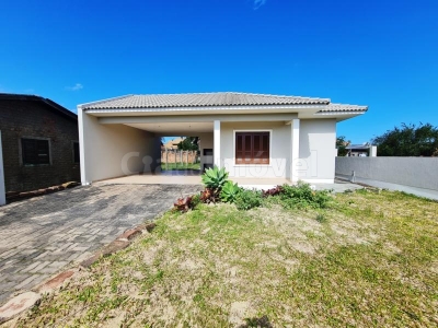 Residência toda em laje , telhas de concreto com 03 dormitórios, sendo 01 suíte, banheiro social, sala e cozinha integradas, área de serviço fechada, abrigo amplo para carro com churrasqueira, amplo pátio, terreno alto da rua, padrão de construção A.