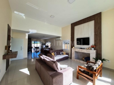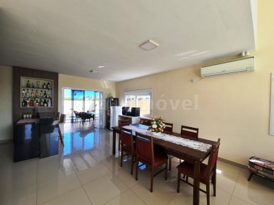 Casa de alto padrão com 03 dormitórios, sendo 01 suíte,conceito aberto distribuído por sala ampla com lareira e sala de jantar, cozinha americana com climatização, lavanderia, garagem para 02 carros, lavanderia, Espaço gourmet com churrasqueira integrada a frente da piscina