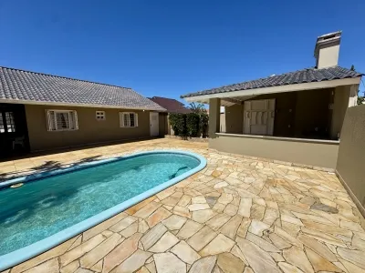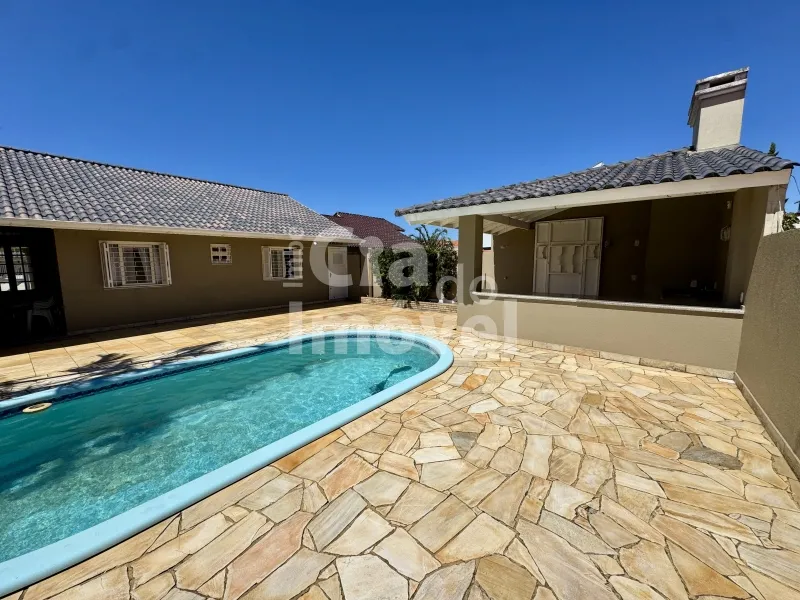 EXCLUSIVIDADE CIA DO IMÓVEL: Casa com 3 dormitórios, sendo 1 suíte , 3 banheiros, sala de estar com lareira, jantar e cozinha integrados, garagem fechada e abrigo para 2 carros, piscina e quiosque com churrasqueira, mobiliada.