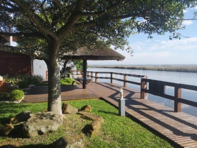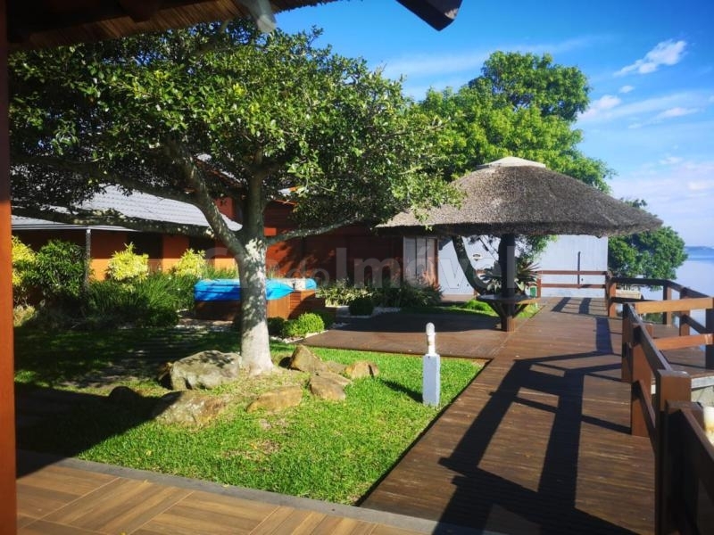 Casa em barranca de rio com 3 terrenos, 5 dormitórios sendo 4 suítes, sacada com linda vista para o rio, 2 salas estar com lareira, banheiro social, lavabo, cozinha estilo americana, dependência de empregada, lavanderia, mobiliada.