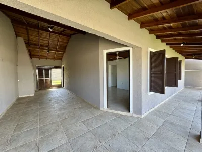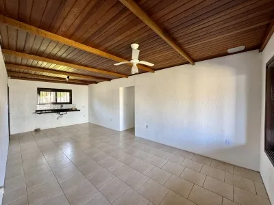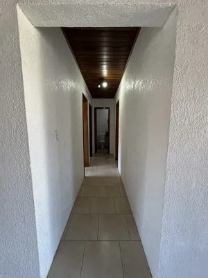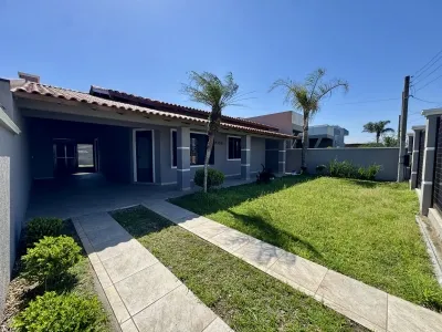 Casa em alvenaria, próximo a todos os recursos, com 03 dormitórios, sendo 01 suíte, sala e cozinha integrados, banheiro social, garagem com churrasqueira e anexo área de serviço.