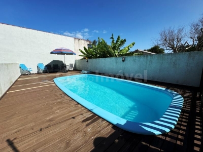 Sobrado duplex com piscina, ótima localização centro de Imbé próximo a avenida Garibaldi, conta com 03 dormitórios, sendo 01 suíte com sacada na parte superior, área na frente envidraçada sala de estar, lavabo, cozinha com churrasqueira, área de serviço fechada, banheiro auxiliar, mobiliada, portão eletrônico, alarme, espaço para colocar 1 carro no pátio da frente.