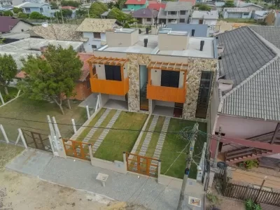 Excelente sobrado com 3 dormitórios sendo 1 suíte, 1 quadra do mar, living para dois ambientes com lareira, cozinha, lavanderia, lavabo, ótimo pátio para colocação de uma piscina e/ou construção de uma edícula, garagem e uma bela varanda com churrasqueira. Na parte superior, sacada em todos os quartos, suíte com vista para o mar e banheiro social.