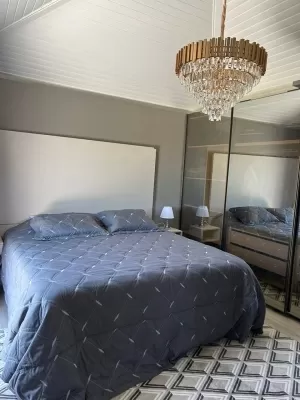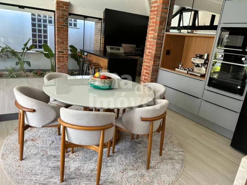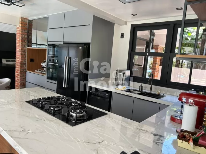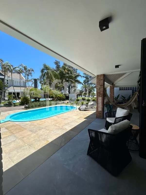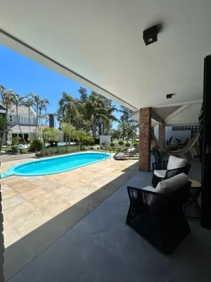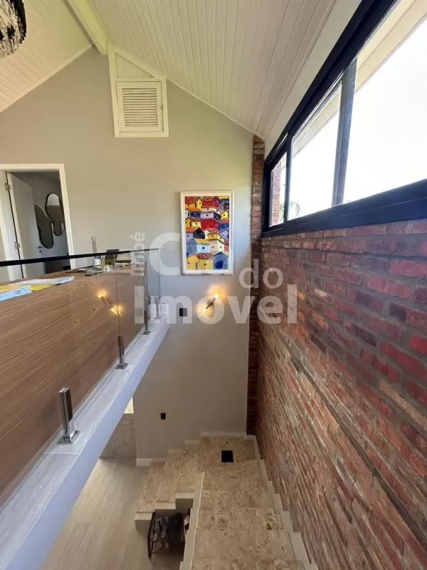 Com 270 m², mobiliada, 03 suítes, uma suíte térrea bem ampla, sacada em um dos quartos, superior, lavabo, sala de estar com lareira, espaço gourmet, cozinha integrada, piscina, lavanderia, 02 garagens descobertas, garagem coberta para jet e lancha, deck na beira do rio e salão de festas.