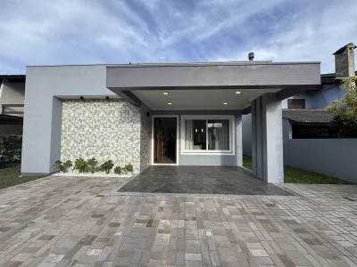 Casa térrea com alto padrão construtivo, junto a Barra de Imbé, de esquina, em fase final de construção, com área construída de 112,69m², Sala e cozinha integrados em um amplo espaço, Lareira e churrasqueira, com lavabo, jardim de inverno e área de serviço, 03 dormitórios sendo 1 suíte, forro em lage de concreto, acabamentos em gesso, aberturas externas em PVC exceto a frontal que sera em madeira estilo ripado com fechadura digital, aberturas internas e rodapés em mdf / laminado, Jardim com grama, brita e plantas. Calçada em concreto e grama. 2 vagas de garagem.