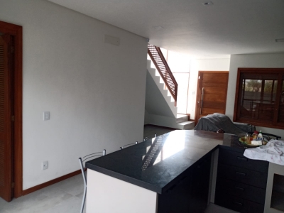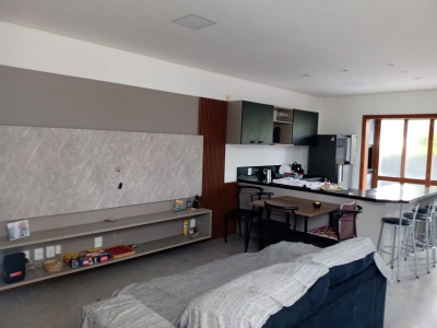 Ótimo sobrado pertinho da barra e beira mar de Imbé, Sala de estar ampla e integrada com a cozinha em conceito aberto, banheiro social, e lavanderia fechada, pátio nos fundos com churrasqueira, na parte superior 3 dormitórios sendo 1 suíte com sacada. Pátio na frente.