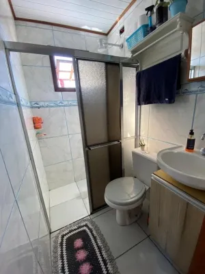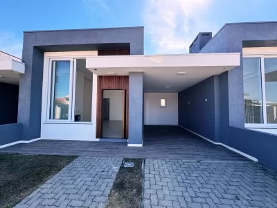 Composta por sala de estar integrada à sala de jantar e a cozinha, 03 dormitórios, 02 banheiros sociais, área de serviços e amplo espaço de lazer aos fundos com churrasqueira e bancada.