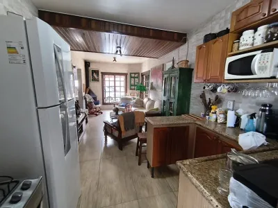 Excelente sobrado duplex todo em laje de concreto, em ótima localização, com 03 dormitórias,sendo 01 com sacada, 02 banheiros, sala, cozinha, lavanderia, garagem com churrasqueira, quiosque com churrasqueira, vaga para carro e estacionamento.