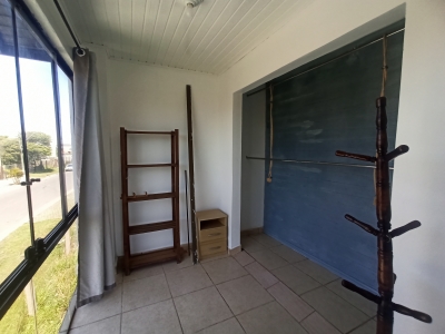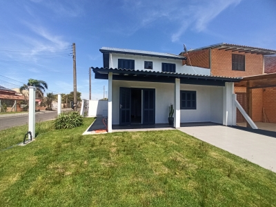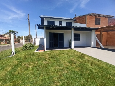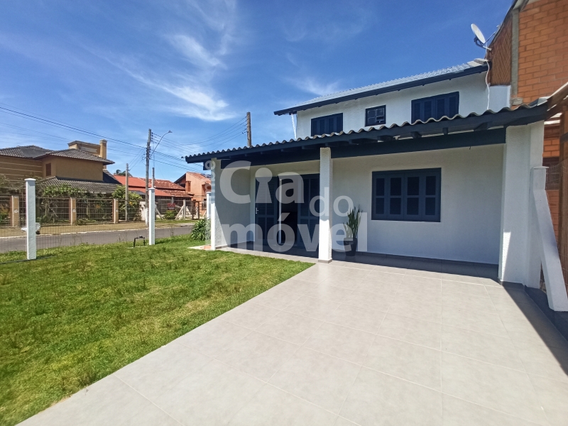 Sobrado de esquina, com excelente localização, com sala de estar e cozinha integradas, sala de jantar, garagem fechada, area de serviço, 01 banheiro social e 1 dormitório na parte inferior, pátio com gramado, na parte superior living, 02 dormitórios sendo 1 com closet, 01 banheiro social,