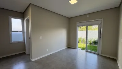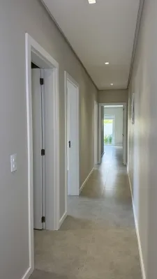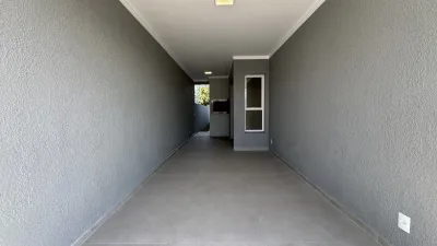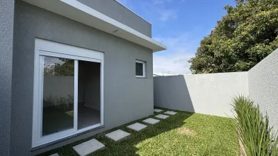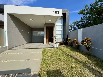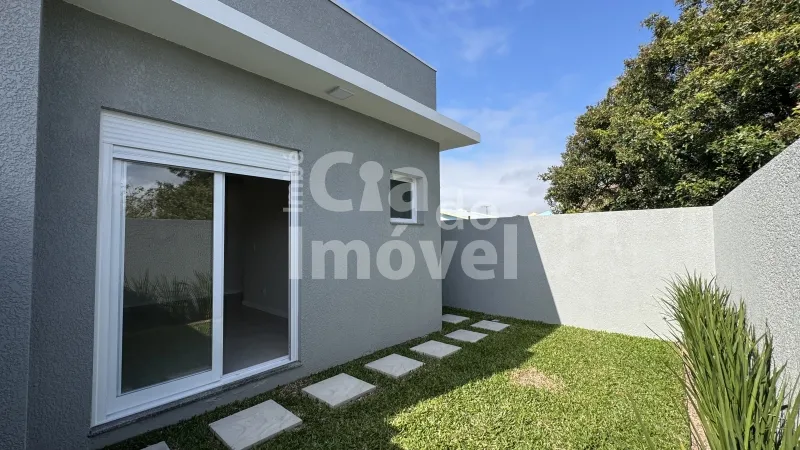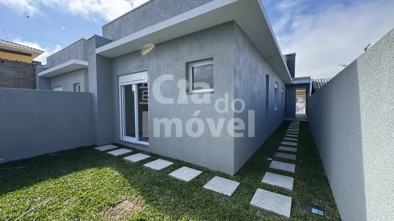 Casa meio lote com 115,34m², 03 dormitórios, sendo 01 suíte master, banheiro social, sala de estar e jantar integrada churrasqueira, abrigo coberto, churrasqueira, água quente, rebaixe em gesso, espera para split.
