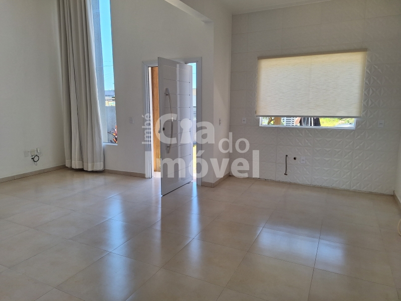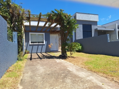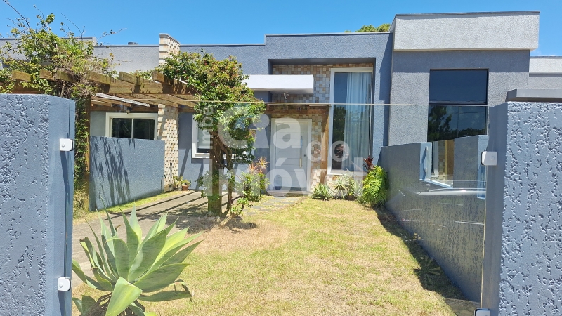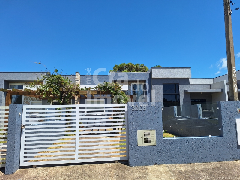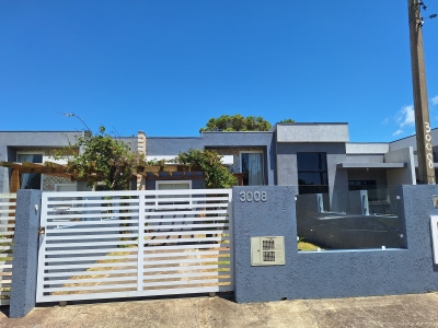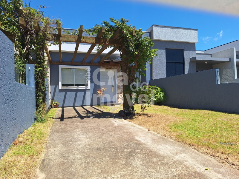 Ótima casa meio lote, somente 5 anos de construção. Possui 2 dormitórios, sala estar e jantar com pé direito alto, cozinha integrada, banheiro social, espera para Split nos dormitórios, todo em laje, área de serviço, churrasqueira, pátio frente e fundos.