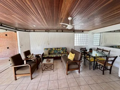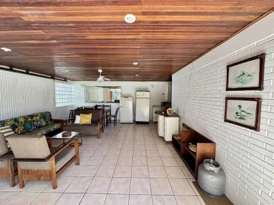 Churrasqueira. Garagem coberta para 02 carros. Lugar para 2 redes. Tanque de lavar roupas na rua. Chuveiro na rua para após praia.