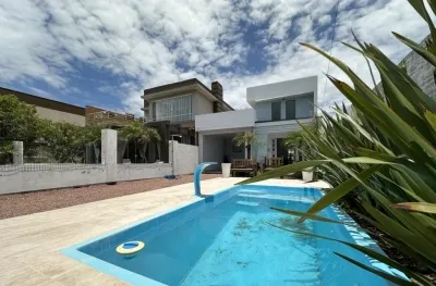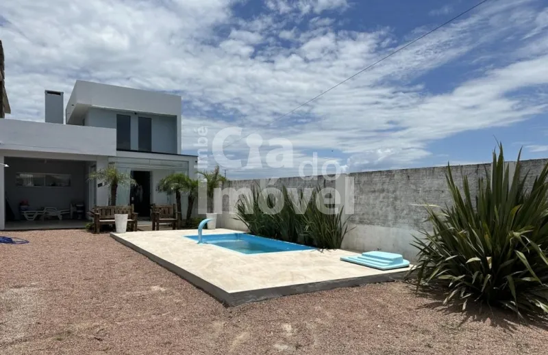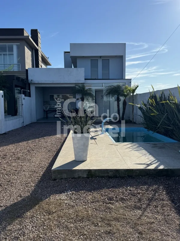 Casa próxima ao mar, com 03 dormitórios sendo 01 suíte, banheiro social, sala de estar e jantar integrada à cozinha com pé direito alto, churrasqueira, área de serviço, terraço com vista para o mar, piscina e vaga de garagem coberta.