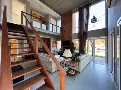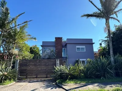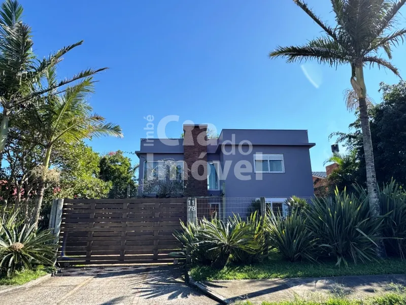 Imóvel de alto padrão, situado no Centro de Imbé! Composta por 05 dormitórios, sendo 04 suítes, 01 banheiro social, sala de estar com pé-direito duplo e uma imponente lareira que se estende por dois andares, cozinha, área de serviço, semimobiliado, e quiosque gourmet com churrasqueira, equipado com bancada elegante que harmoniza o ambiente com a piscina aquecida.
