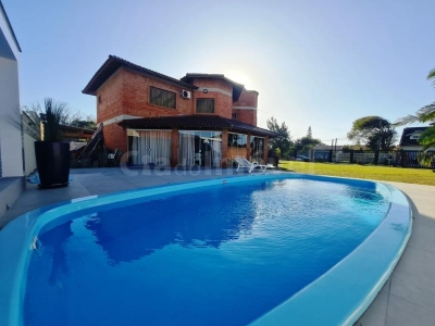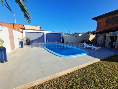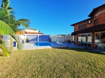 Residência com 05 dormitórios, sendo 02 suítes (todos com ar split), 03 banheiros sociais, sala jantar e estar, cozinha, salão de festas com área de serviço, churrasqueira, sendo 03 quartos com tv, sala com tv 60 polegadas, internet wi-fi, mesa de sinuca. Piscina. 02 terrenos, amplo Pátio, garagem fechada.