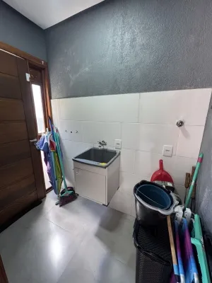 integrada com a cozinha com churrasqueira, lavabo, lavanderia fechada,