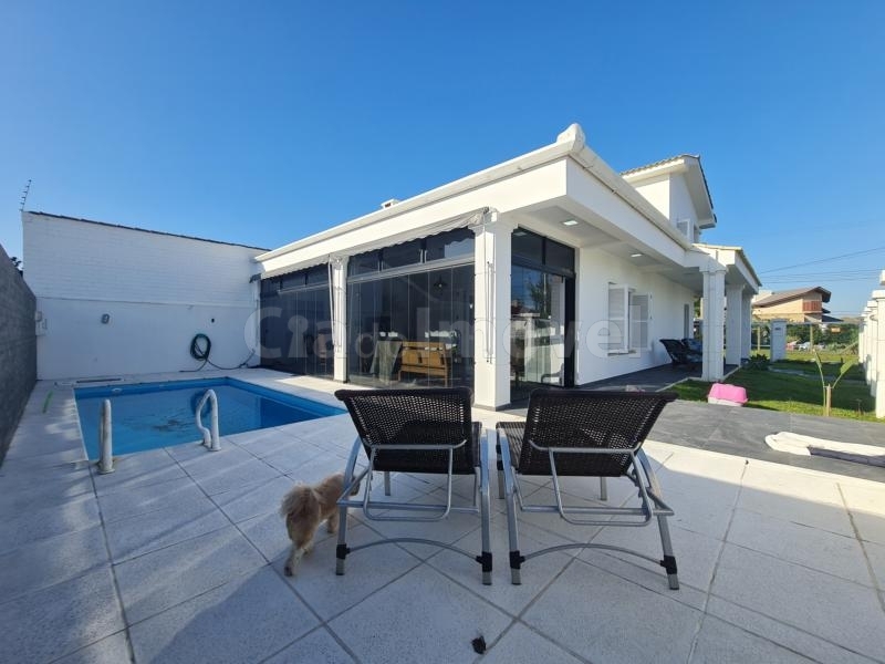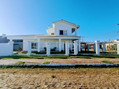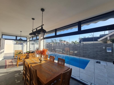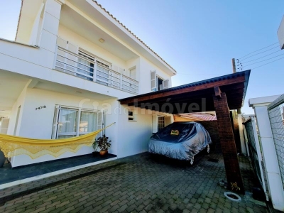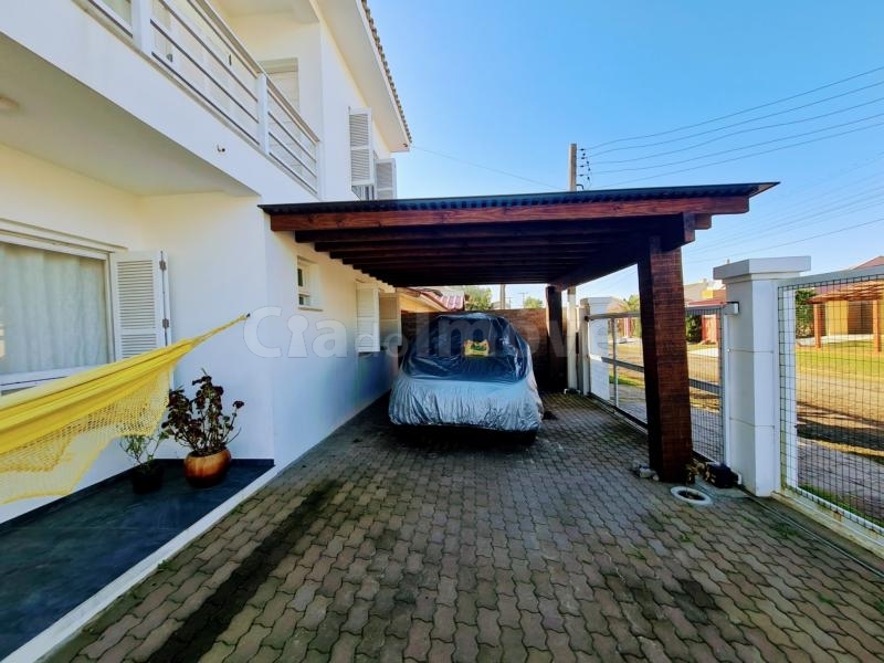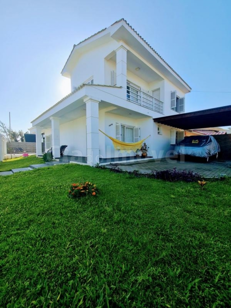 Sobrado de esquina todo em laje de concreto, inclusive beirados, esquadrias padrão AA, poucos metros do mar, com 03 dormitórios sendo no pavimento superior 02 dormitórios e banheiro social, sacada com linda vista, pavimento inferior com 01suíte, lavabo, hall de entrada, living com lareira e sala de jantar, cozinha integrada, área de serviço, espaço gourmet com churrasqueira em um ambiente aconchegante, funcional e confortável para receber as constantes visitas de amigos e familiares, todo ele envidraçado voltado para piscina com o sol dia todo. Abrigo para carro, pátio todo fechado e ajardinado, semimobilada.