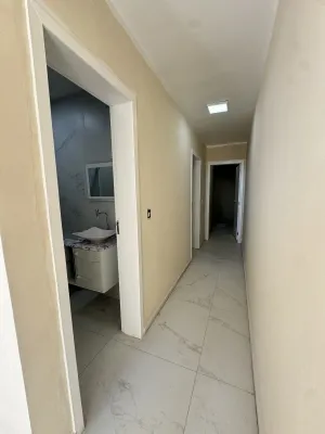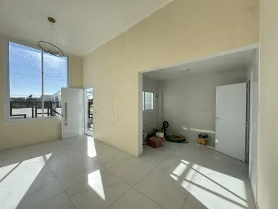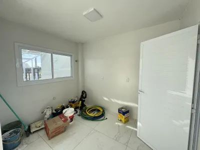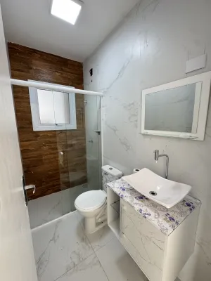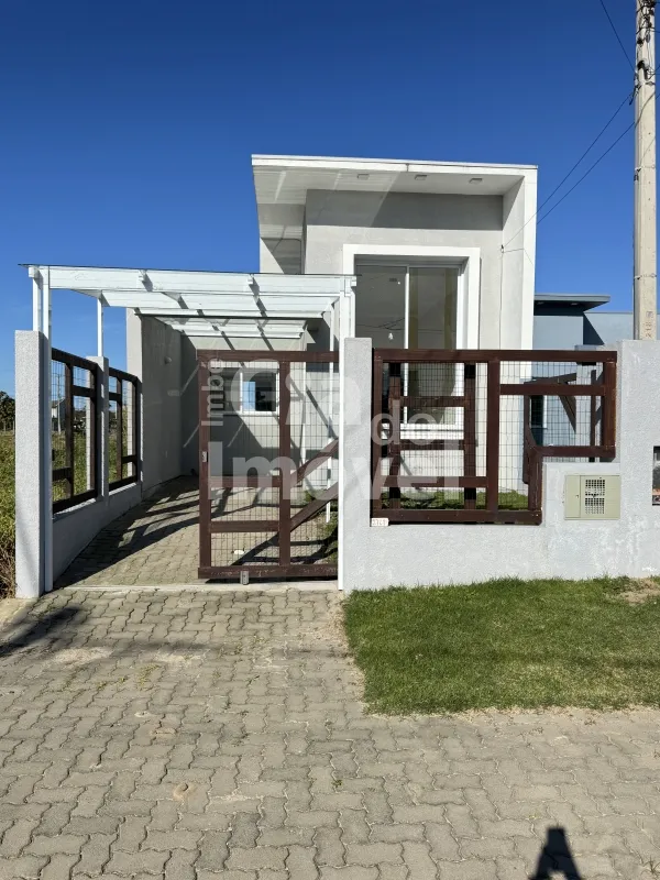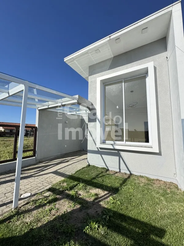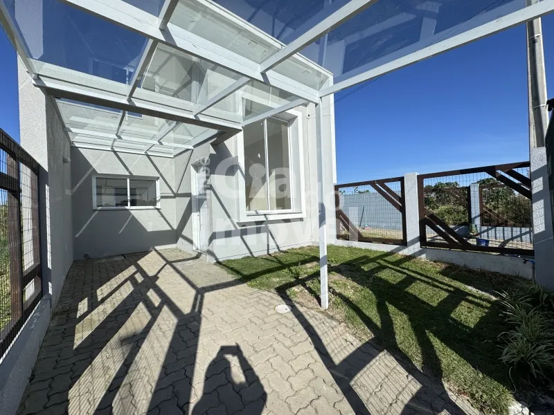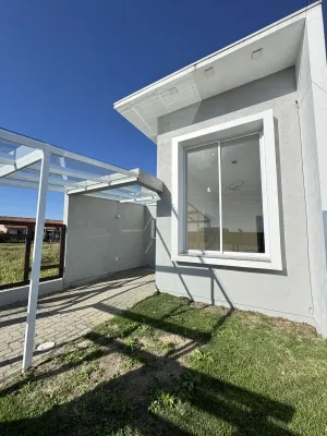 Casa geminada com 72m², 02 dormitórios, sendo 01 suíte, banheiro social, sala integrada a cozinha, com churrasqueira em área de serviço fechada. Pátio frente e fundos.